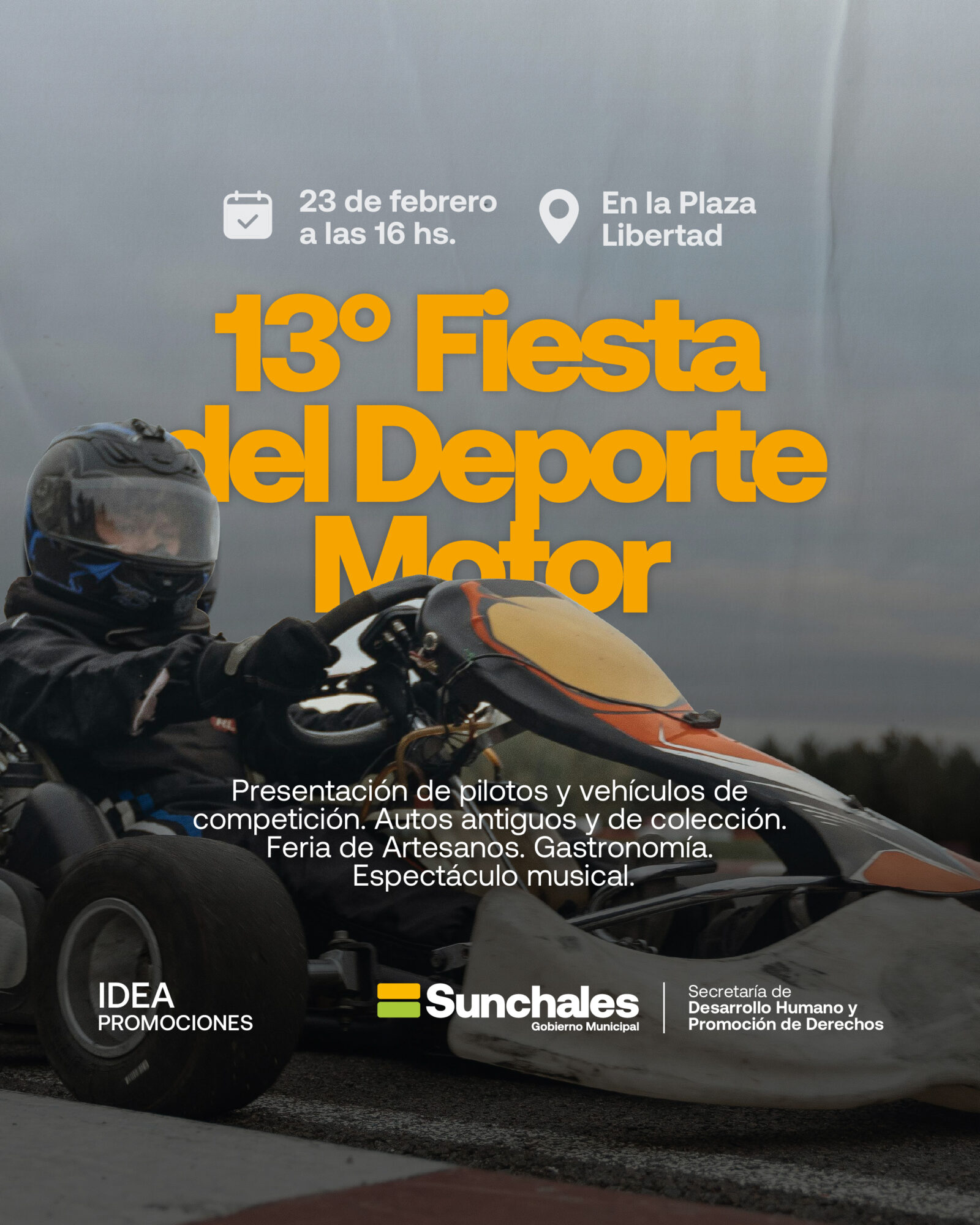 ¡los esperamos para compartir la 13° fiesta del deporte motor que es organizada por idea promociones y cuenta con el apoyo de la municipalidad de sunchales!