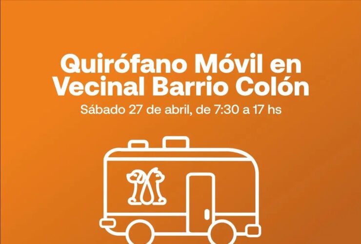 El sábado 27, de 7:30 a 17 hs, el Quirófano Móvil estará en la vecinal del barrio Colón para la castración de caninos hembras de manera gratuita, con turno asignado. Quienes estén interesados deberán reservar el turno, desde hoy lunes ...