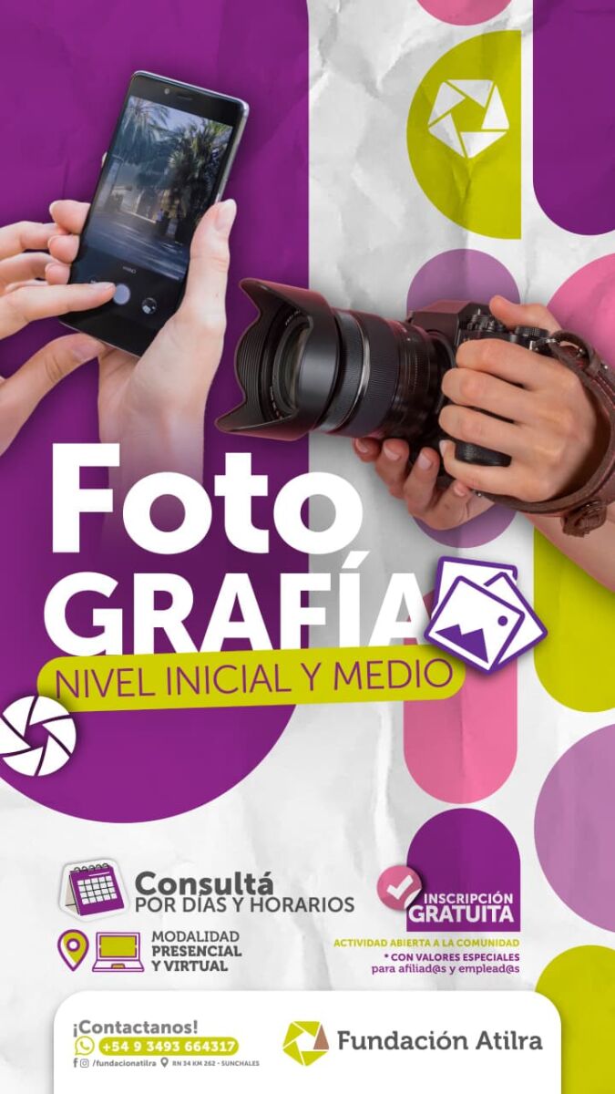 La Fundación Atilra invita a la comunidad a sumarse al curso de Fotografía – Nivel Inicial y Medio, una oportunidad única para desarrollar habilidades artísticas y técnicas en un entorno accesible y colaborativo.