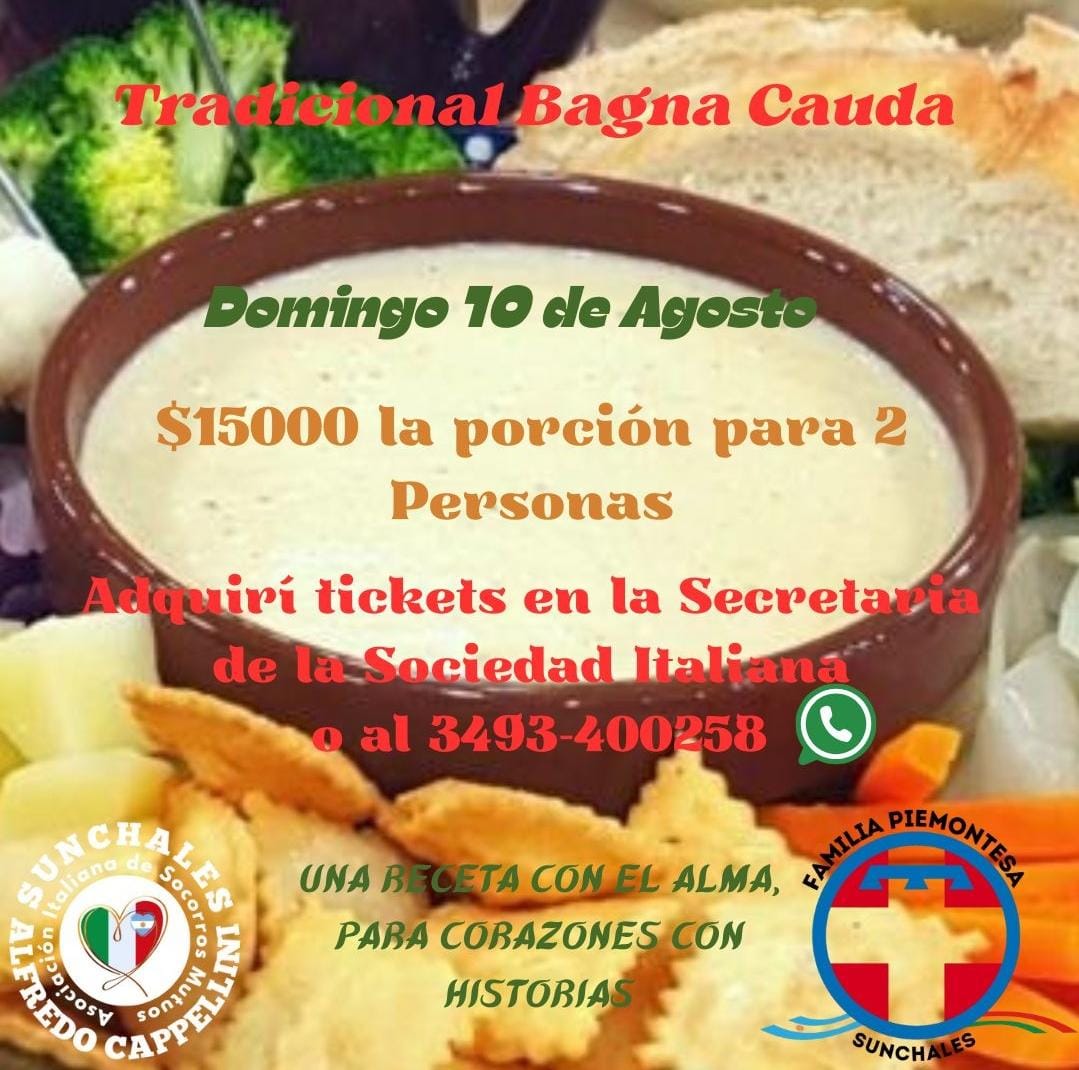 Este domingo 10 de agosto, vení a buscar tu porción de la clásica Bagna Cauda, preparada con todo el sabor y el amor de nuestras raíces italianas. ❤️🍲