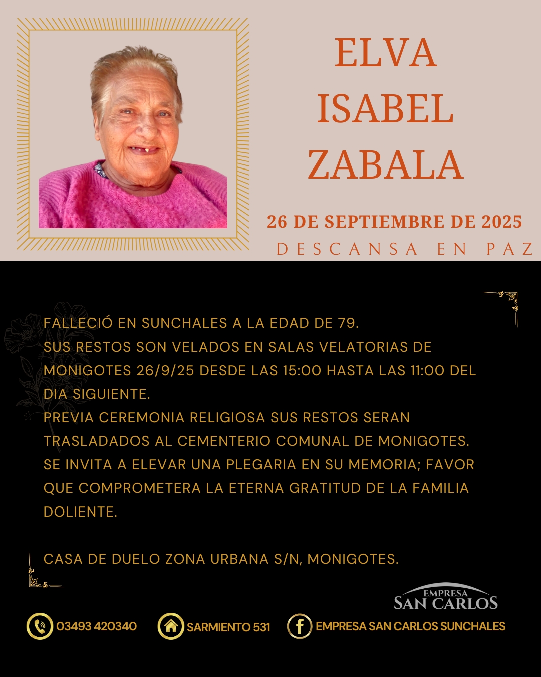 Fallecio, Elva Isabel Zavala, 79 años