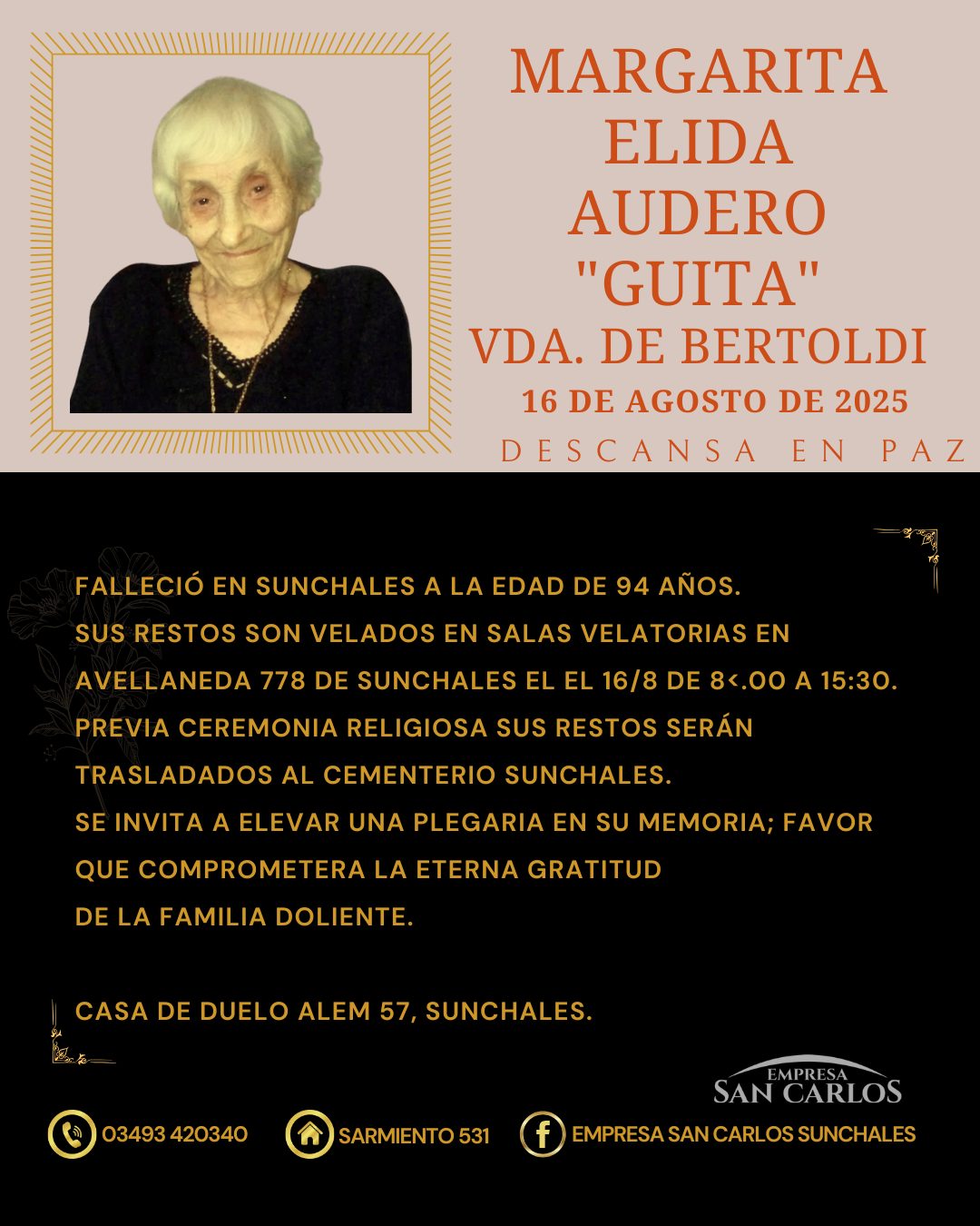 Margarita Elida Audero vda de Bertoldi, 94 años