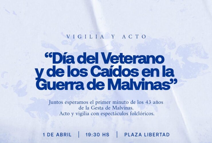 El Teniente de Navío VGM, Owen Crippa, y la Municipalidad de Sunchales te invitan a la Vigilia y Acto en conmemoración del «Día del Veterano y de los Caídos en la Guerra de Malvinas». Este martes 1° de abril, te ...