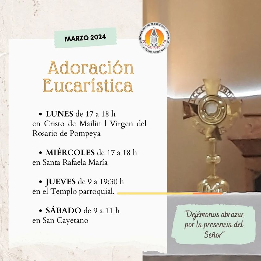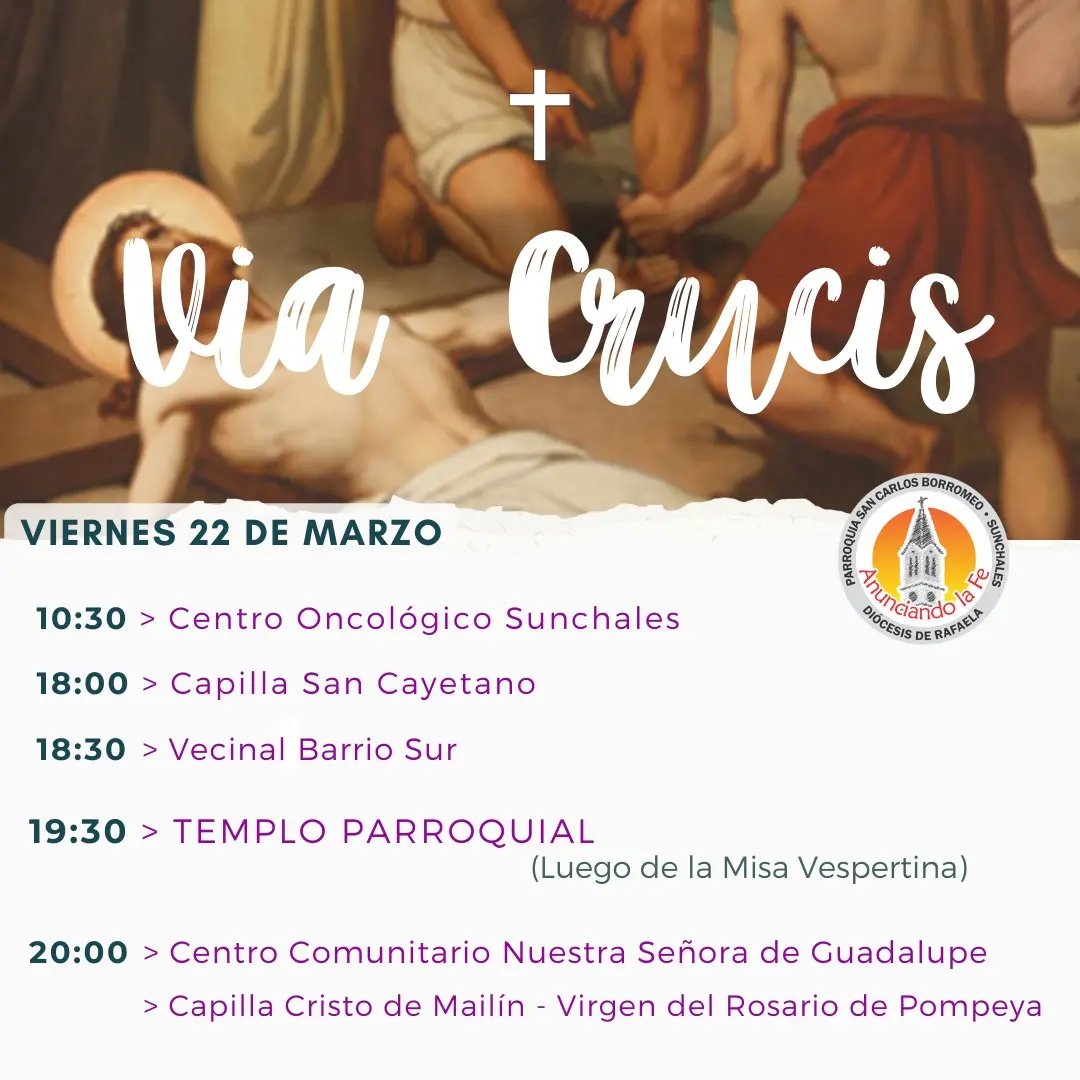 La Arquidiócesis San Carlos Borromeo Sunchales, presenta la programación del Martes Santo, 31 de marzo de 2026, con actividades especiales para la comunidad de fe. Misa: – Hora: 10:00 en ...