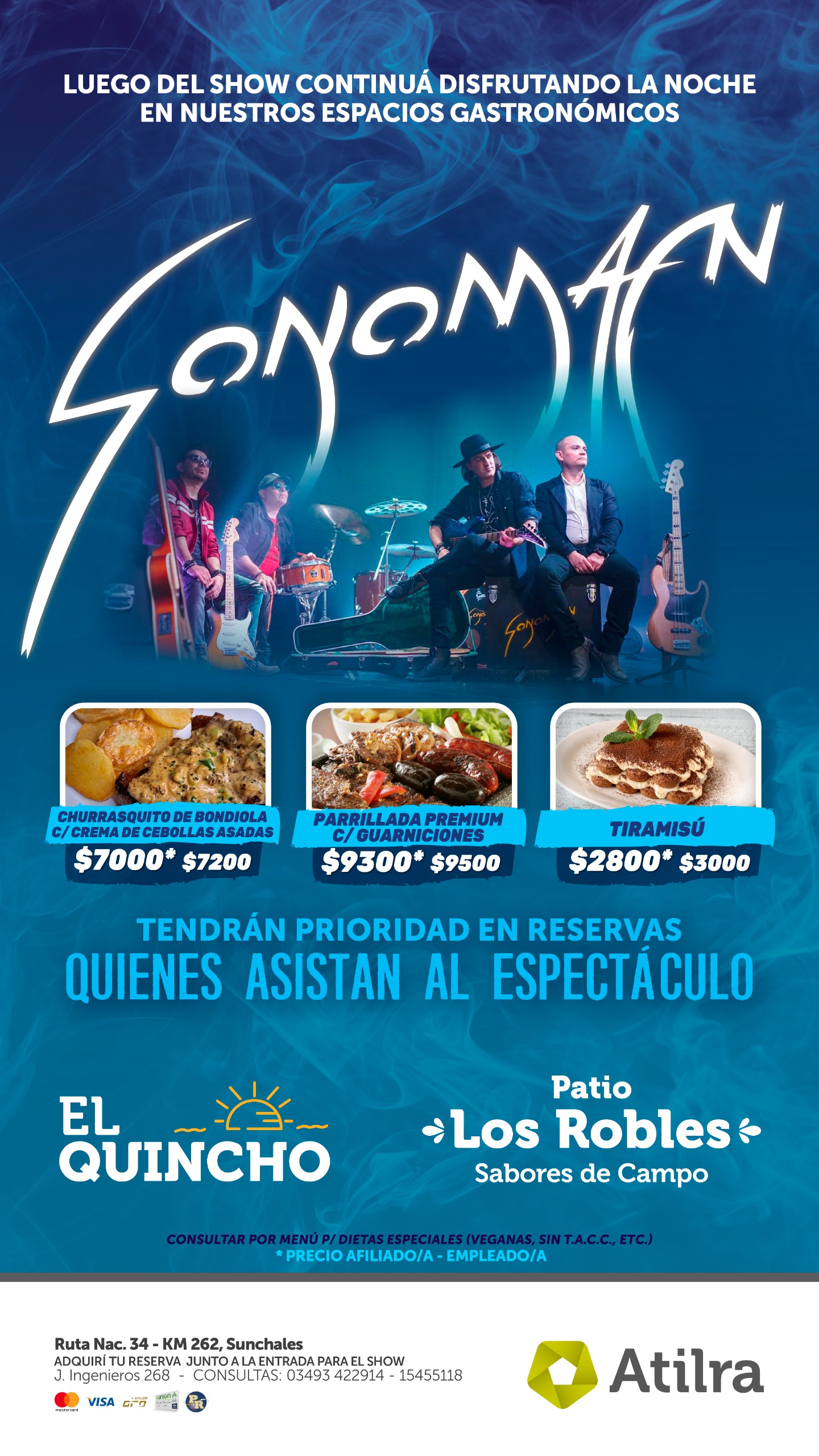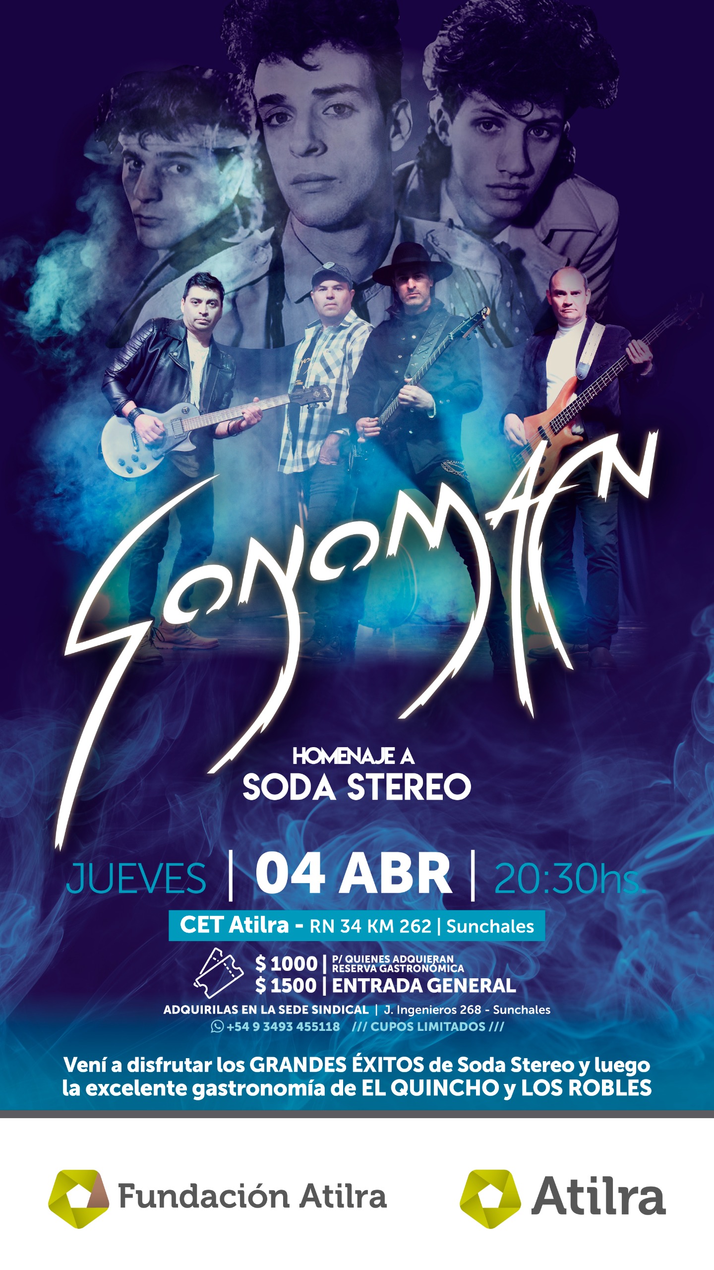 Jueves 4 de abril a partir de las 20:30 sonomam homenaje a soda stereo auditorio del cet de atierra,