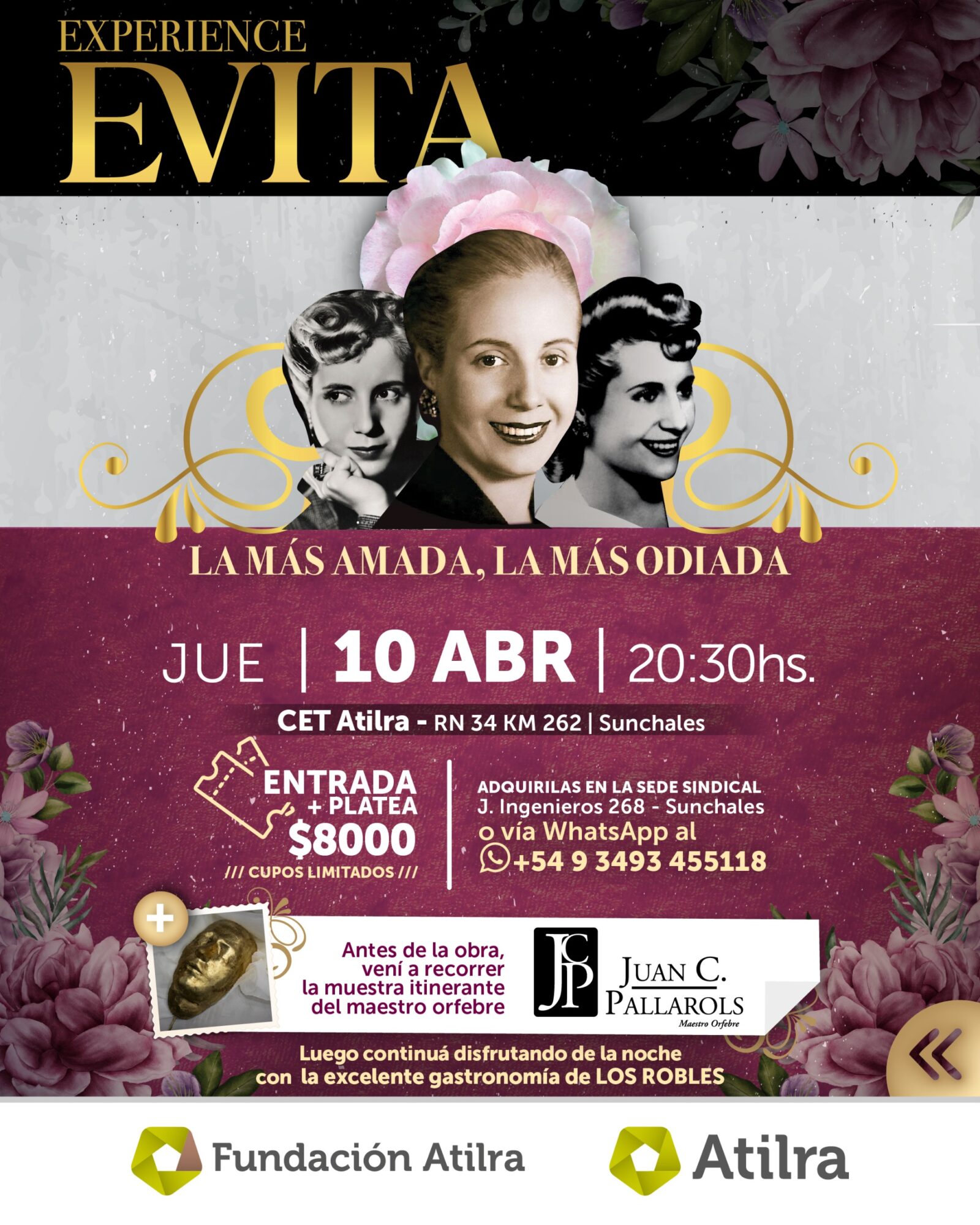 Llega al auditorio del cet atilra, directo de “un café con perón” (ex palacio unzué) 🇦🇷 evita experience la más amada, la más odiada -.